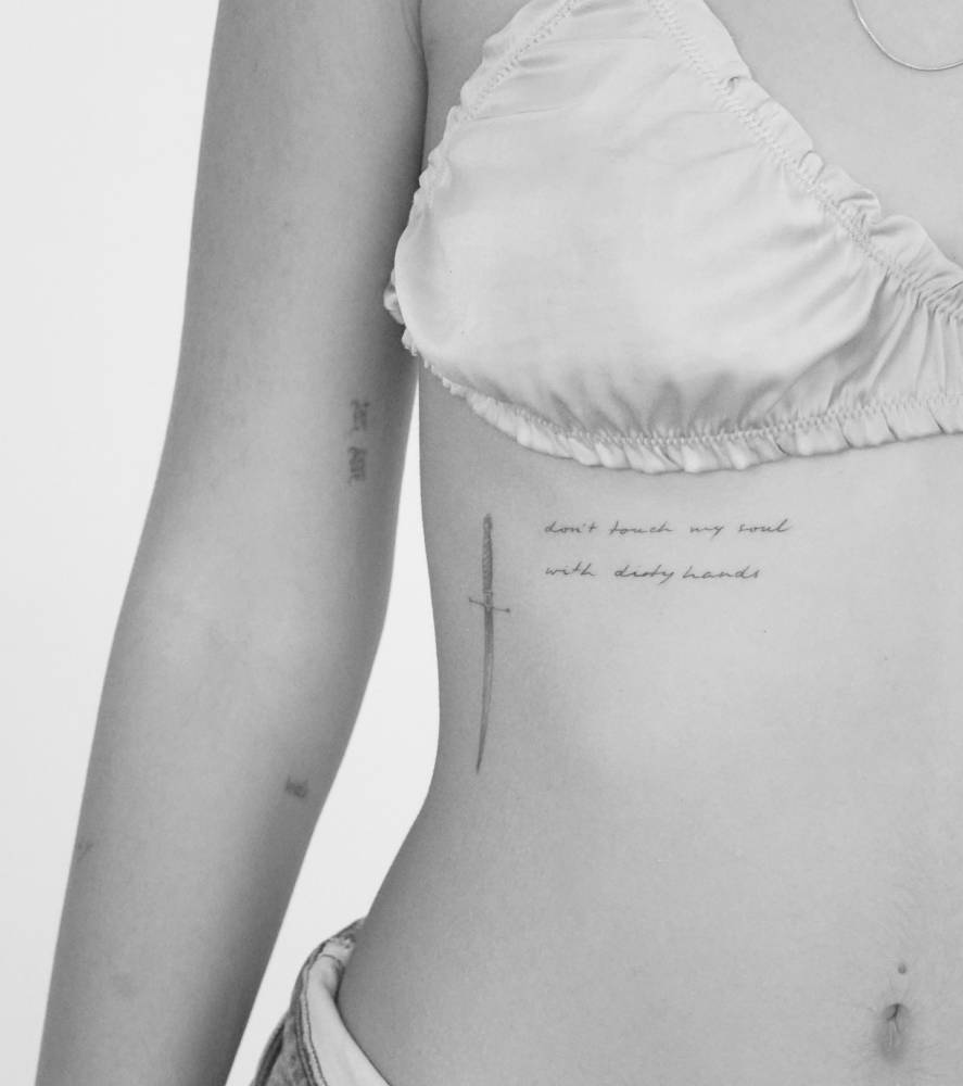 "Don't touch my soul with dirty hands" handwritten lettering tattoo. Fuente
